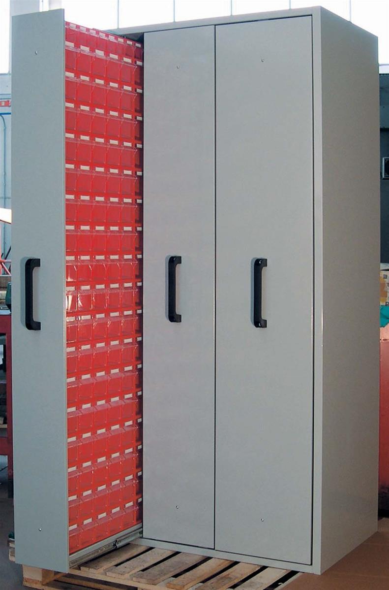 Robustes Gehäuse mit 3 Doppel getäfelten Gleitfläche quer. Die Platten sind leicht zu manövrieren, weil sie auf Teleskopschienen mit Kugellagern ausgestattet montiert sind. Jede Platte ist mit einer Sicherheitsverriegelung in der Öffnung vorgesehen. Um zu kippen Schränke sind mit einem Mechanismus, der das Öffnen von nur einer Platte zu einem Zeitpunkt ermöglicht. Zusätzlich ist jeder Schrank mit Nasen zur Befestigung an der Wand oder dem Boden vorgesehen sind. Epoxy Pulverbeschichtung RAL 7038 grau.